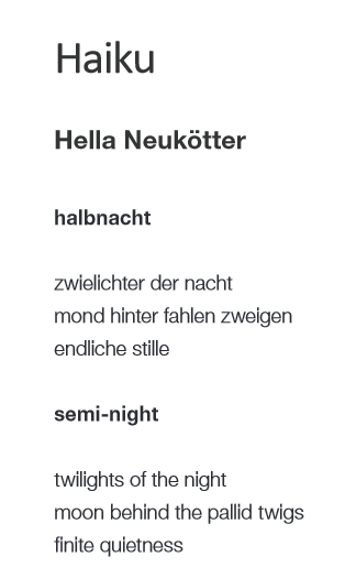My haiku Semi-night was published by an online literary journal in both English and German.